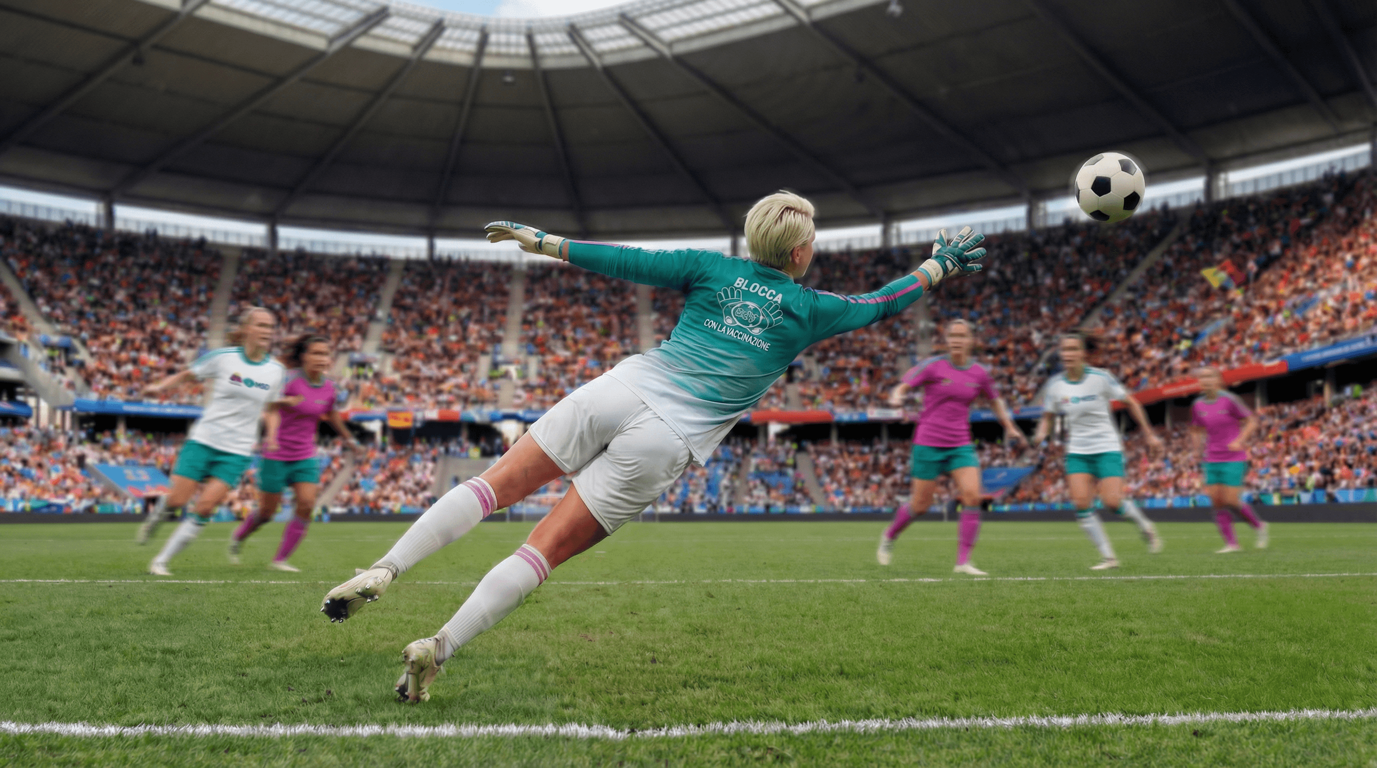 Tutte le immagini della campagna sono state sviluppate attraverso un processo creativo che integra strumenti di intelligenza artificiale e post-produzione avanzata. La costruzione dei personaggi è partita da uno studio approfondito delle figure atletiche, delle pose e dei movimenti tipici delle portiere, per restituire azioni credibili e dinamiche.