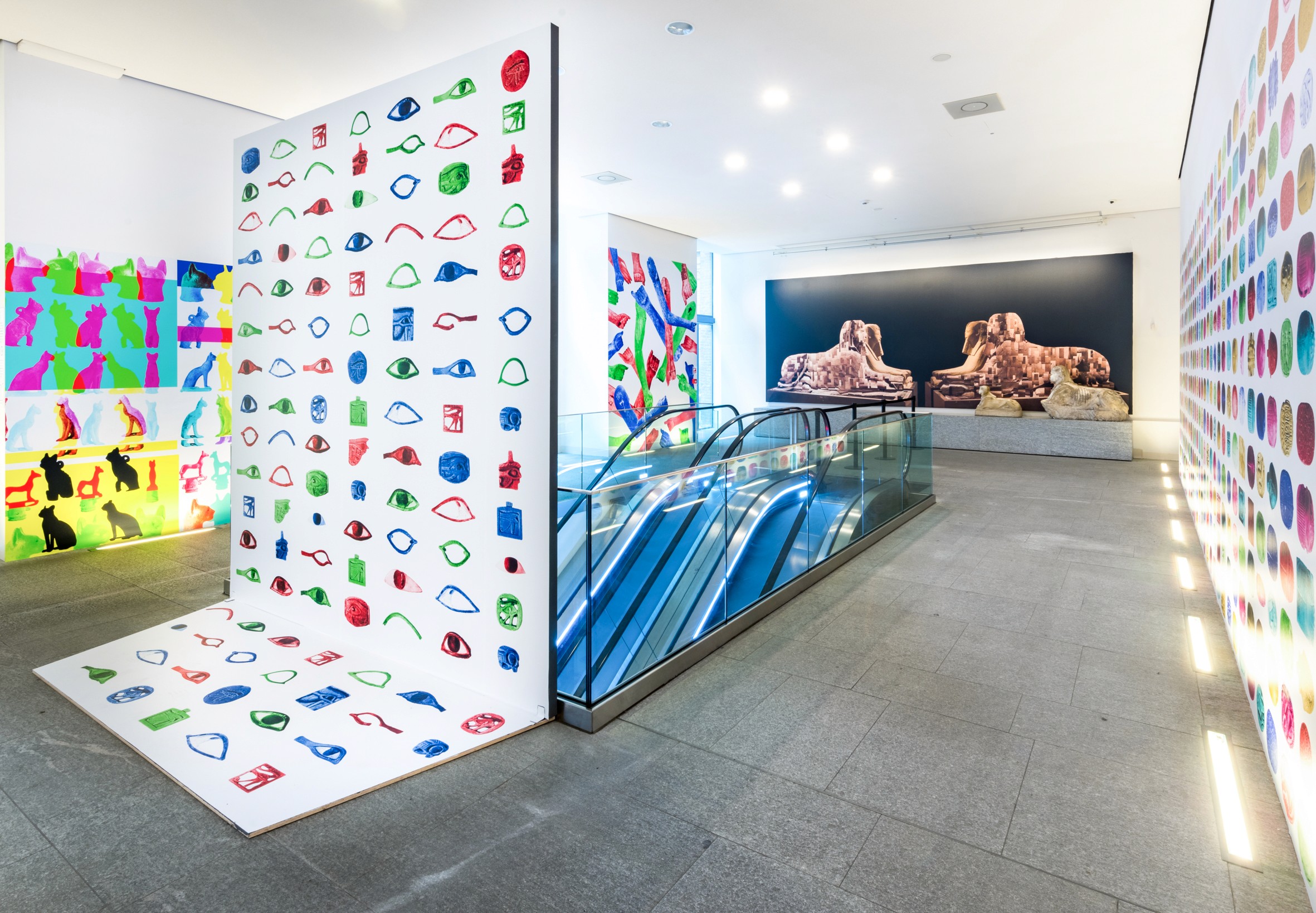 l progetto prende forma anche come installazione murale: l’intero ingresso del museo viene rivestito da grandi wallpaper fotografici, trasformandosi non solo in uno spazio espositivo, ma in un ambiente immersivo e partecipativo. Questo spazio diventa spontaneamente un set fotografico, in cui i visitatori – numerosissimi – iniziano a ritrarsi e condividere immagini.