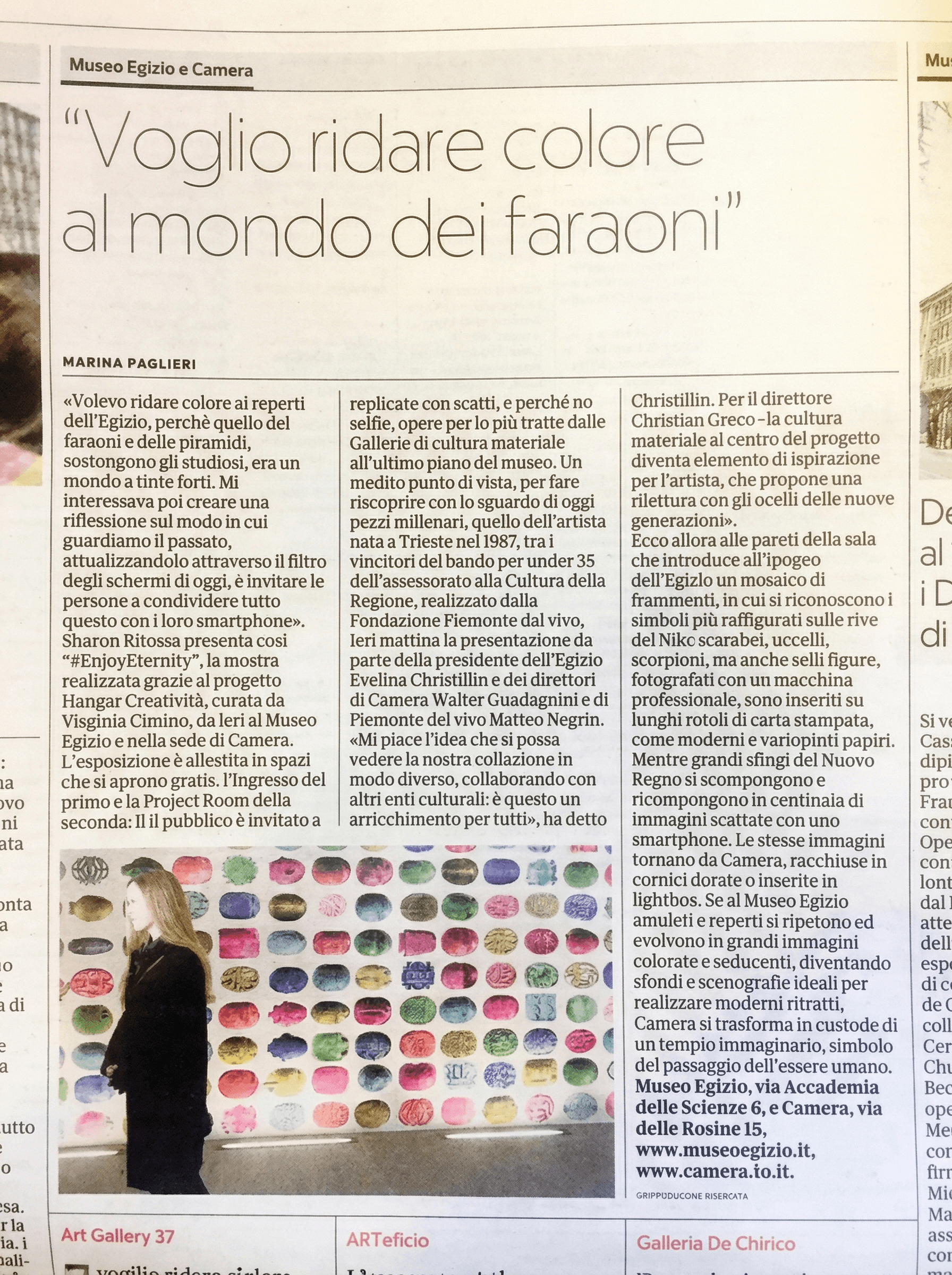 Il progetto è stato realizzato grazie alla collaborazione con il Museo Egizio, alla curatela scientifica di Virginia Cimino, e al supporto di Hangar Creatività e di Camera, il centro italiano per la fotografia