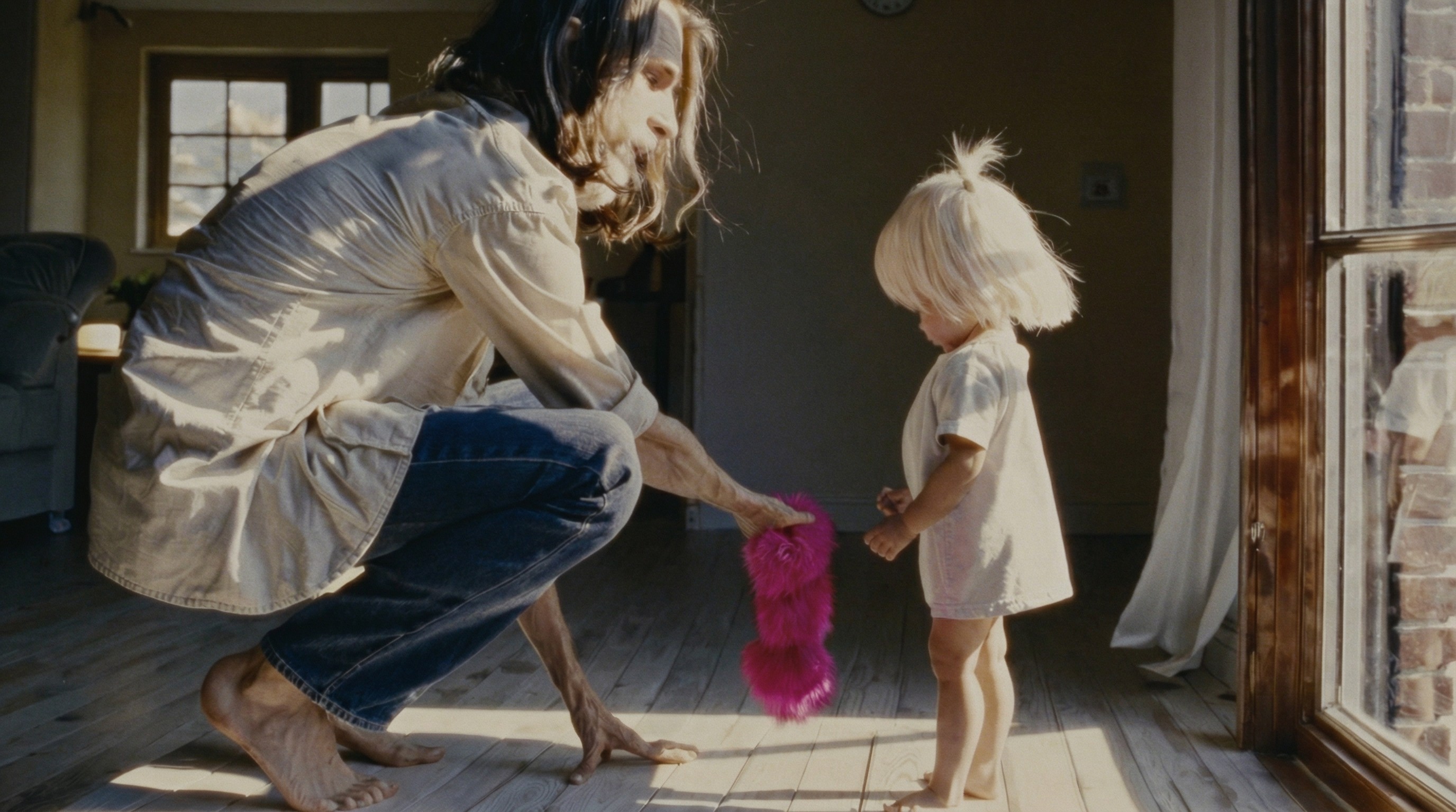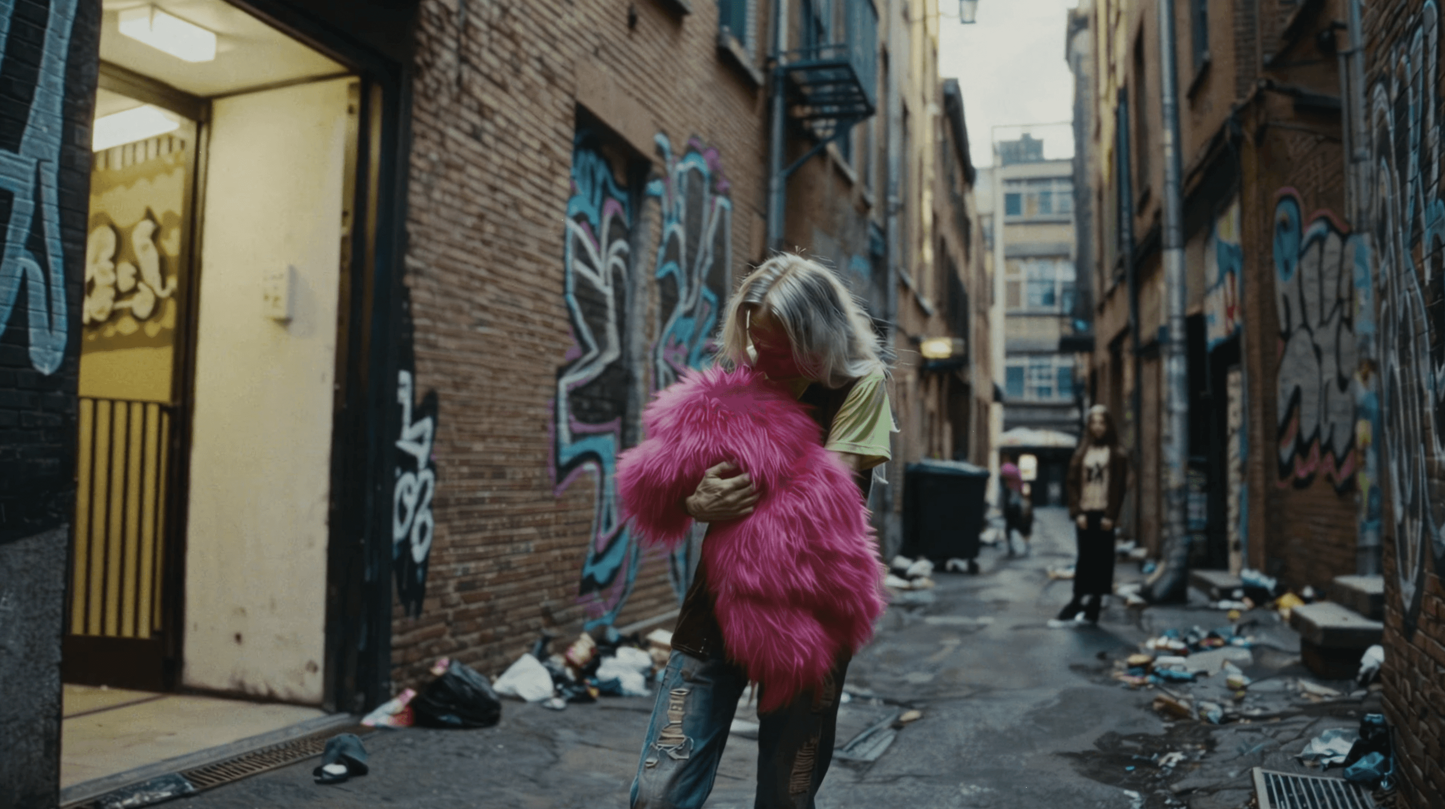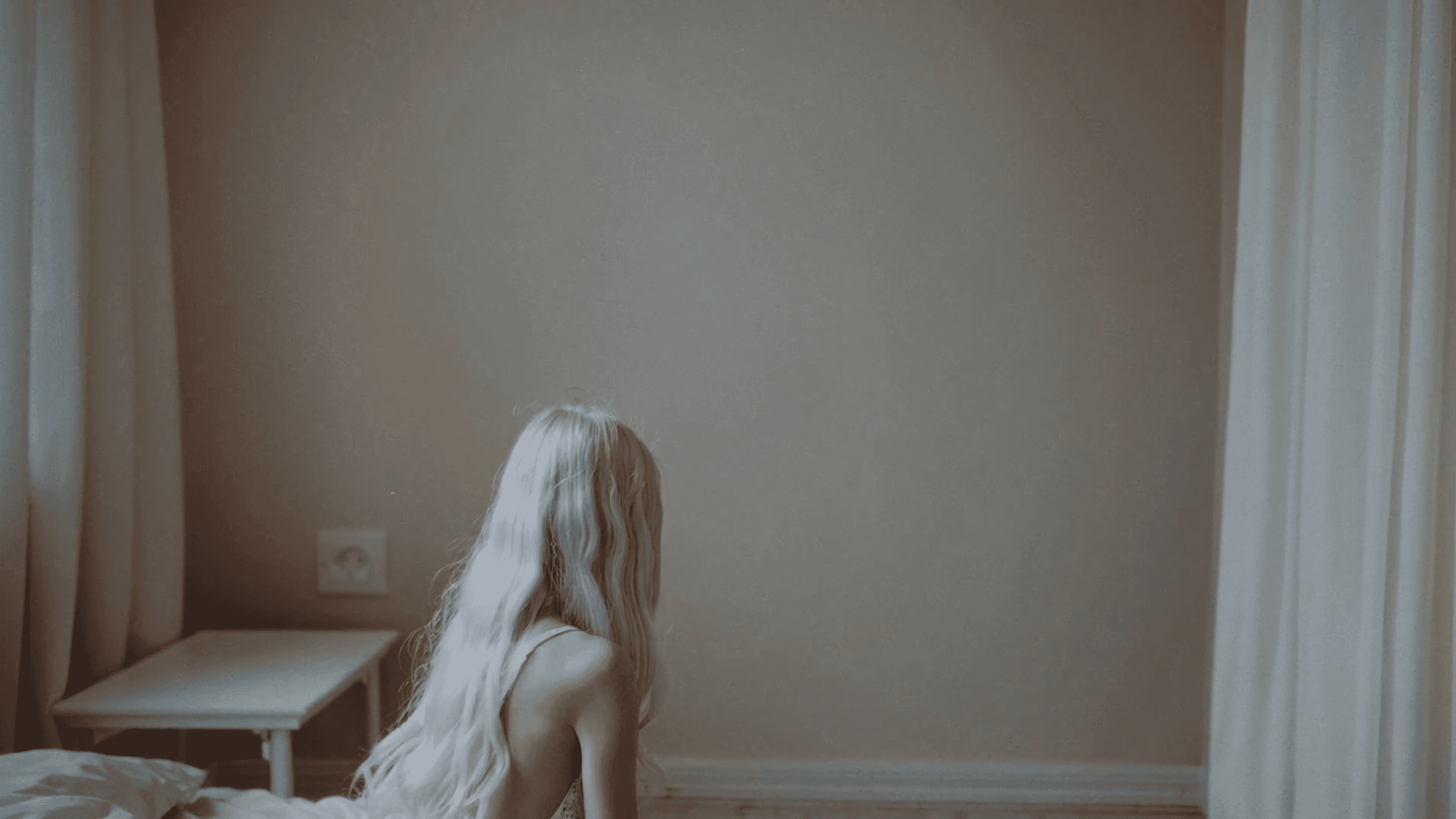 La protagonista appare sempre di spalle, riconoscibile dai suoi lunghi capelli biondi quasi bianchi, che diventano un segno visivo costante lungo tutto il video. Il suo volto non viene mai mostrato: la sua identità rimane sospesa, come i pensieri e le emozioni che attraversano la narrazione. Il padre, invece, compare solo in brevi momenti, come una presenza lontana che emerge tra sogni e ricordi.
