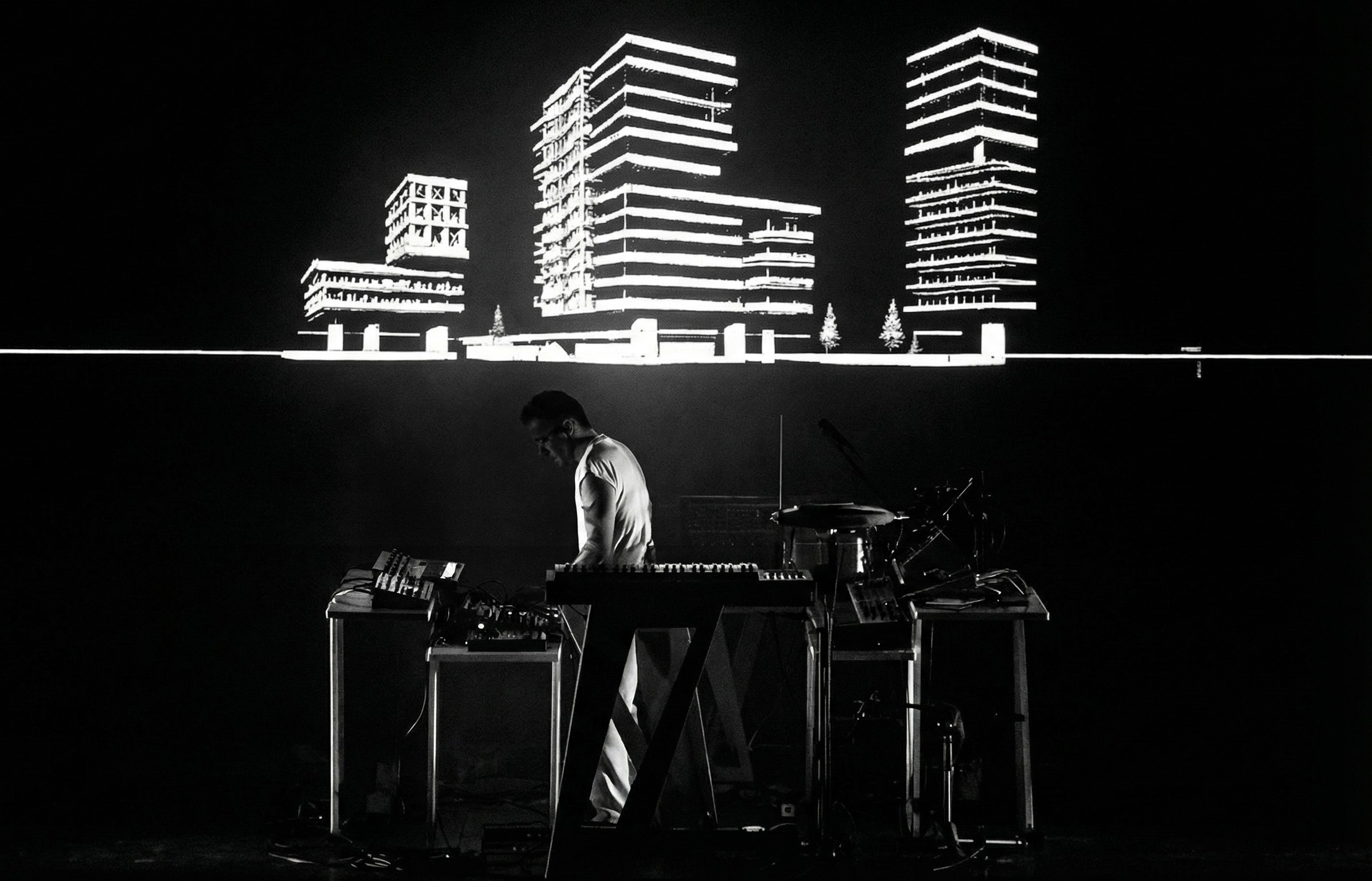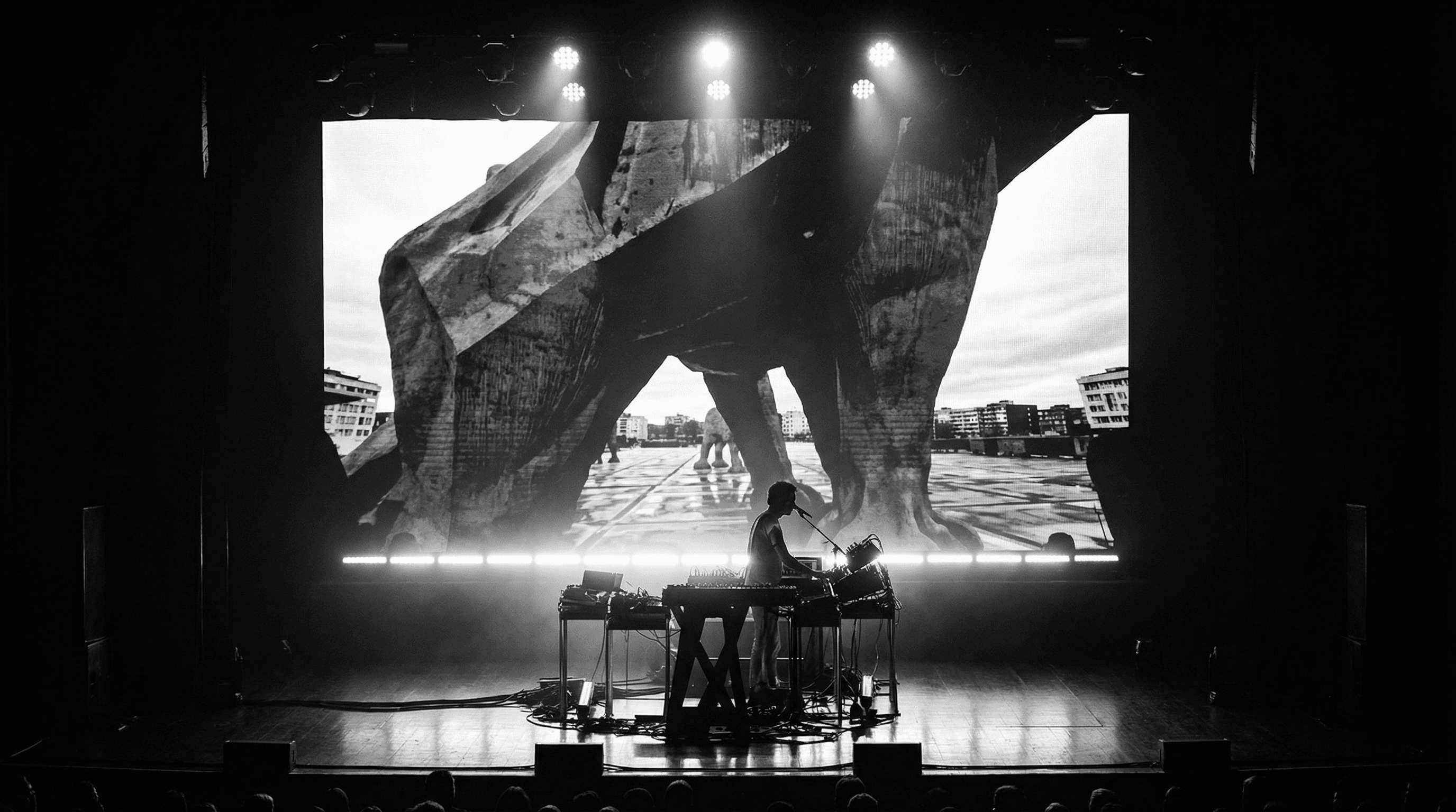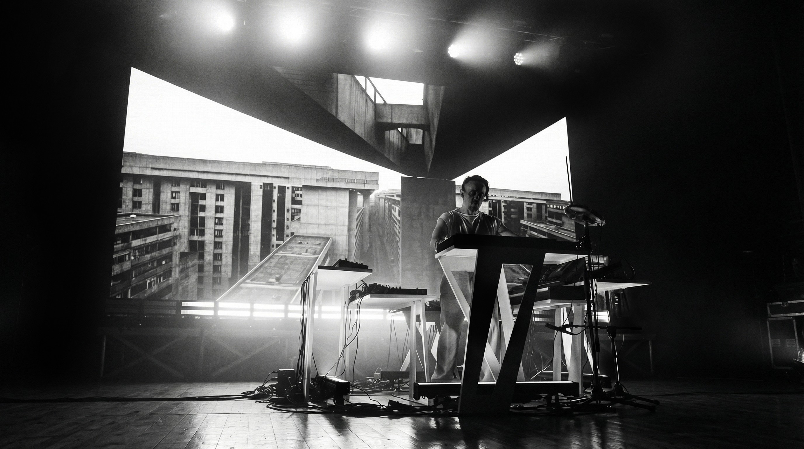 Il progetto nasce dall’esigenza di costruire un immaginario visivo il più possibile aderente alla ricerca estetica dell’artista, ispirata alle architetture brutaliste e al rapporto tra spazio urbano, suono e percezione. I visual sono stati concepiti come un racconto visivo continuo della durata di circa un’ora.